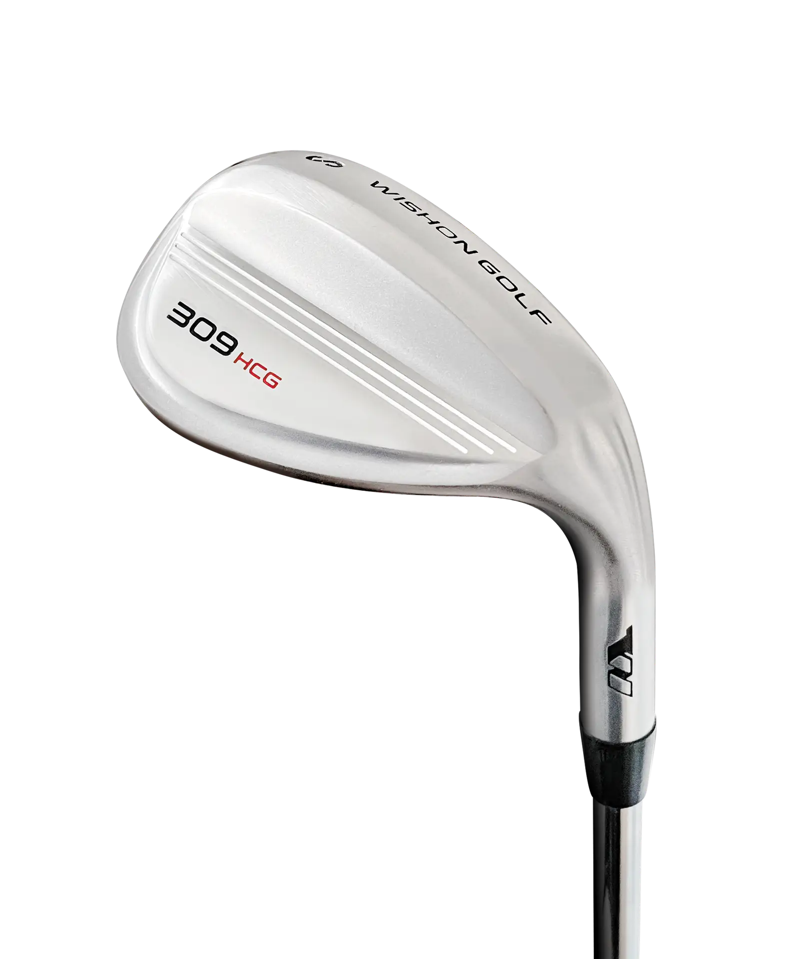Wishon Golf has employed this lesser known principle of clubhead dynamics to create an all new family of wedges that deliver enhanced backspin by moving mass higher on the head to position the CG above the typical point of impact on the face. Impact below the CG causes the head to rotate slightly forward which causes the ball to roll up the face to offer a slight increase in backspin over the normal reaction of the ball to the friction of the areas between scorelines. Adding to the spin enhancing weight distribution on the 309HCG wedges is the R&A/USGA legal milled face.