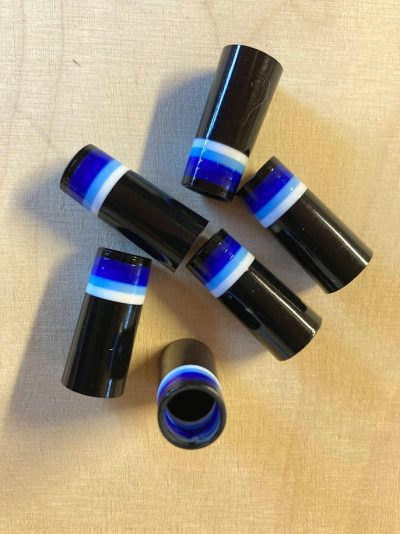 Musta ferrule jonka alaosa on raidoitettu valkoisella raidalla sekä sinisen erisävyin.