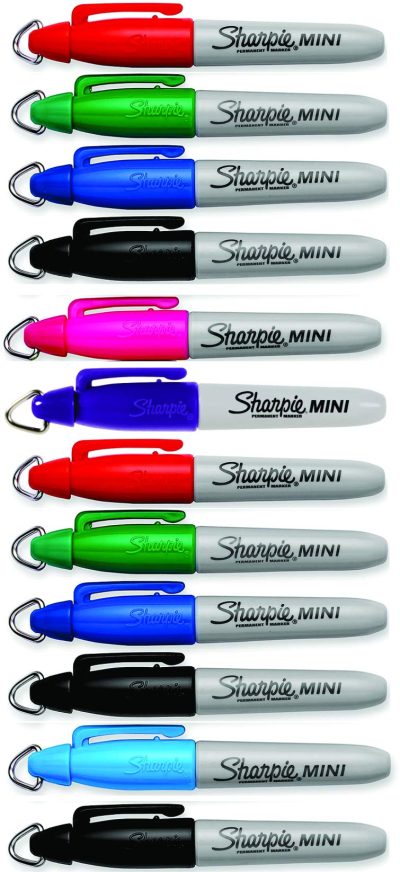 Merkkauskynä, eri värejä. Korkissa pieni lenkki kiinnitystä varten.