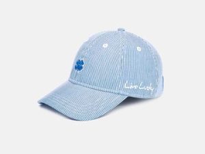 Takaa säädettävä naisten lippalakki. Hauska raidallinen kangas. Edessä ommeltu 3D merkki.